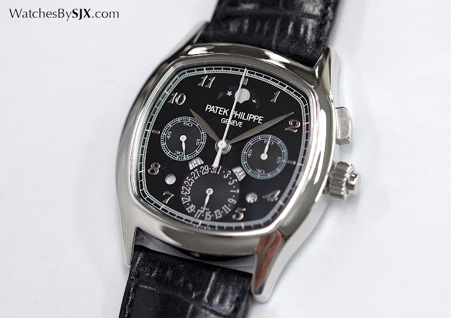 Van slechts 37 mm, de ref. 5951P is een kleine horloge door moderne normen; zijn omvang beperkt door de kleine beweging. Maar vanwege de casemateriaal alsmede de dikte, de ref. 5951P voelt dicht en forse, meestal niet een kwaliteit geassocieerd met Patek Philippe horloges. Met een kussenvormige kast en Breguet cijfers, is de algehele look blik afgeleid van vintage chronografen van de jaren 1930 (Patek Philippe heeft een opmerkelijk rijke archief van chronografen ), maar de stijl van de wijzerplaat is modern. De positie van de dag en de maand ramen, samen met het schrikkeljaar en dag en nacht openingen, zijn grondig moderne elementen.